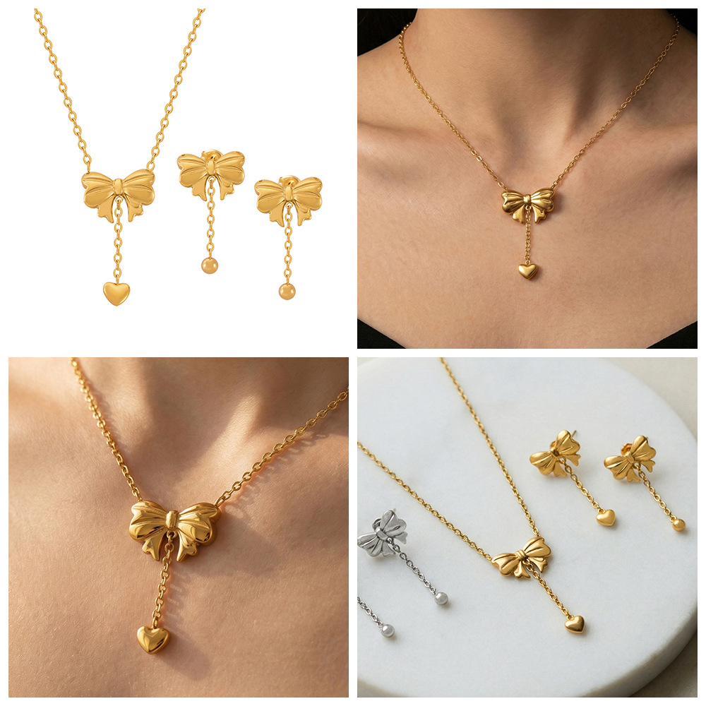 Bow Heart Tassel Earrings Necklace