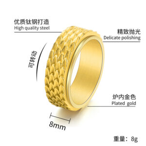 Men’s Stainless Steel Dragon Scale Rotating Ring