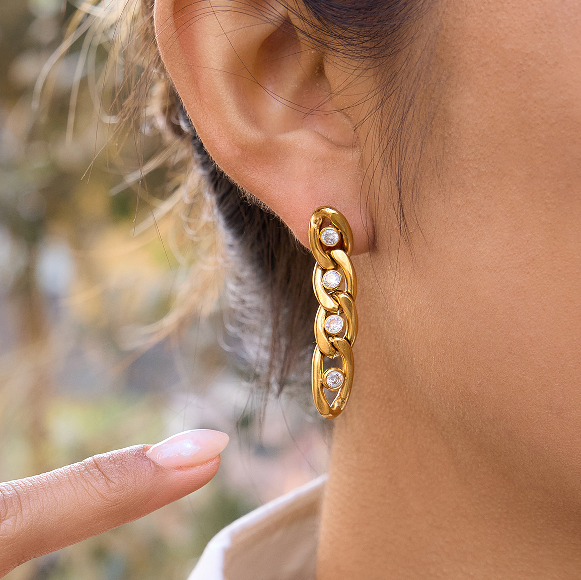 Be the first to review “Stainless Steel Tassel Zirconia Earrings”